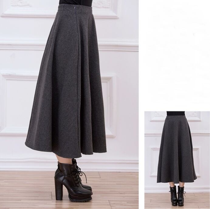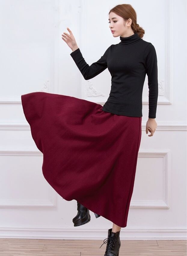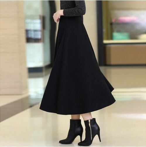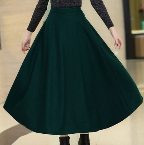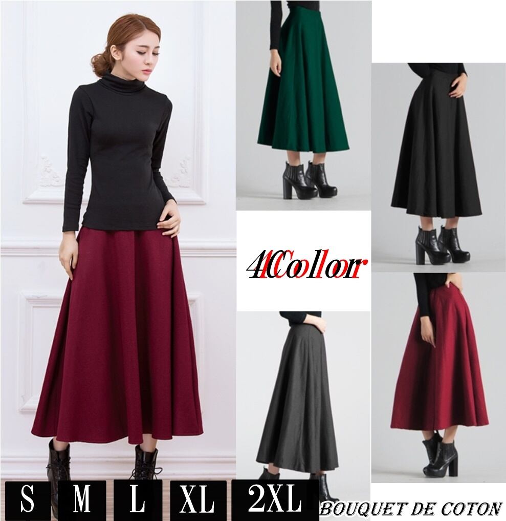 ボトムス スカート フレアスカート ロング丈 ウール 無地 シンプル/無地//レッド/グレー/グリーン/ブラック【S】【M】【L】【XL】【XXL】hi0592
