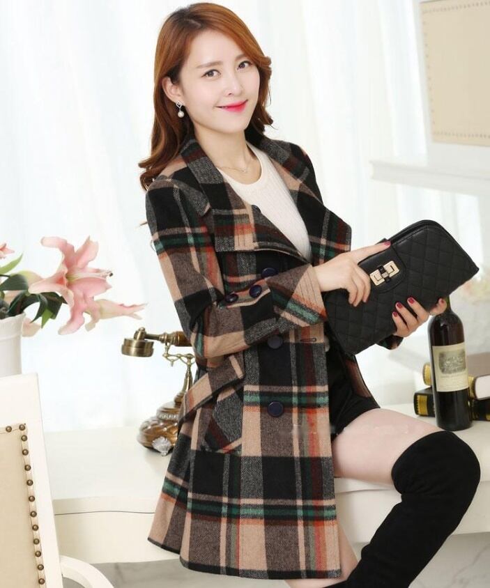 チェック柄/ロング/韓国ファッション着痩せ/結婚式/パーティー/お見合い/綺麗め