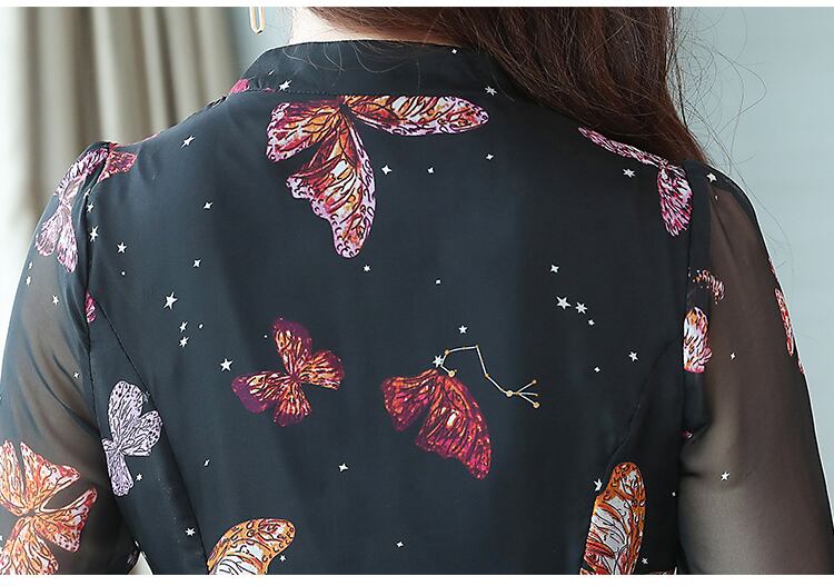 レディース/ワンピース/ワンピ/ひざ下丈/ミドル丈/ミディ丈/蝶/蝶柄/バタフライ/シースルー/かわいい/上品/長袖/春夏/デート/Aライン/大人可愛い/ベルト付き/夜空/星柄/星座