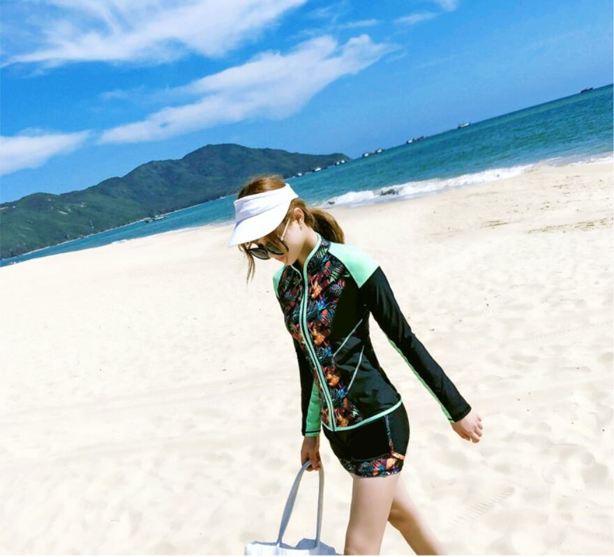 レディース ラッシュガード 長袖 ロング 大きいサイズ セパレート スイムウエア フィットネス水着 4点セット M〜3XL 2カラー hi0696