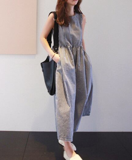 レディースファッション/レディース/春夏/オールインワン/ノースリーブ/袖なし/ワイド/パンツスタイル/楽チン/普段着/お出かけ/韓国ファッション/おしゃれ/流行/ギンガムチェック/チェック柄