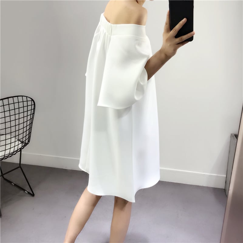 シャツ/ブラウス/トップス/五分袖/半袖/レディース/ファッション/オフショルダー/オフショル/ホワイト/フリーサイズ/ワンピース/ひざ丈/M/L