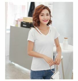 レディースファッション/レディース/トップス/ネックライン/Vネック/Tシャツ/半袖/大人かわいい/セクシー/きれいめ/夏/新作/韓国ファッション/スリム/ハンギングネック/ホルターネック/ライン透かし彫りTシャツ