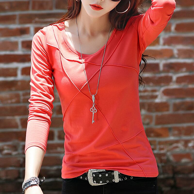 春 レディース 新作 ラウンドネック シンプル スリム 大きいサイズ 綿 女性 韓国 長袖Tシャツ レディース tr0005