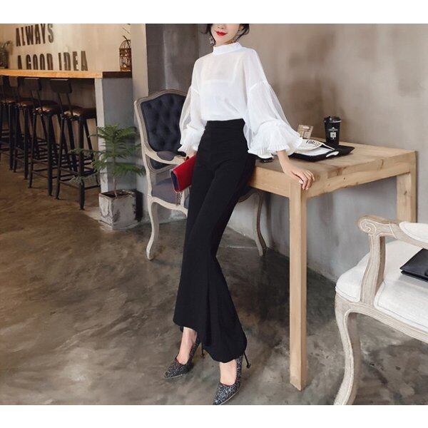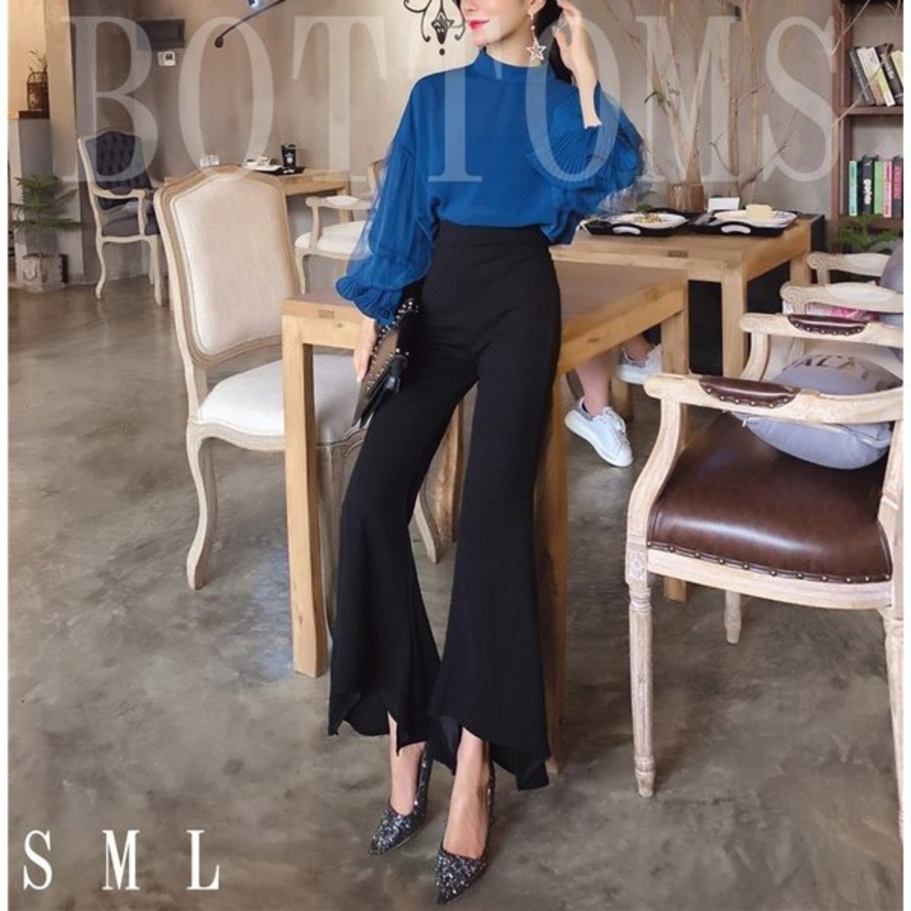 即納有り レディースファッション ボトムス ワイドパンツ ベルボトム パンツ 通気性 ストレッチ性 ブラック 0833
