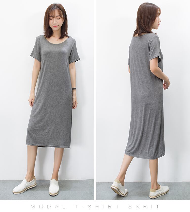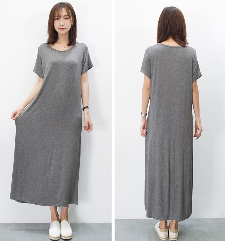 レディース ワンピース 半袖 ラウンドネック M L XL ミモレ丈 ロング丈 ロングスカート 夏 薄手 Aライン 脚長効果 無地 ママコーデ 運動会 シンプル カジュアル 着回し 人気 合わせやすい カジュアル cnalby0048
