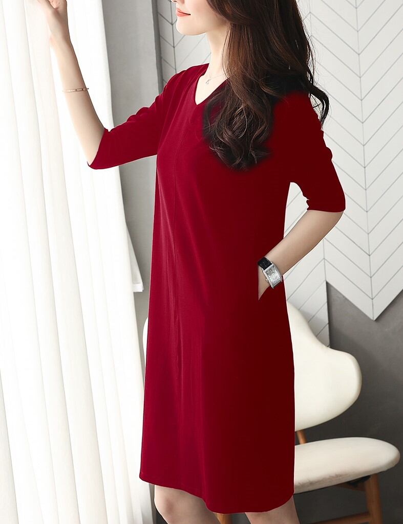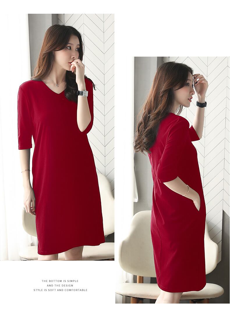ワンピース Tシャツ レディース 半袖 Vネック ミディアム 膝丈 無地 ゆったり ゆるい ゆとり ナチュラル シンプル カジュアル ラフ ルームウェア 部屋着 お出かけ おしゃれ 綺麗 カラバリ豊富 春夏 2020春 cnalby0027