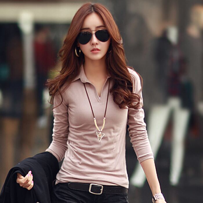 シャツ/レディースファッション/トップス/ポロ襟/長袖/無地/大人/綺麗/カジュアル/スリム