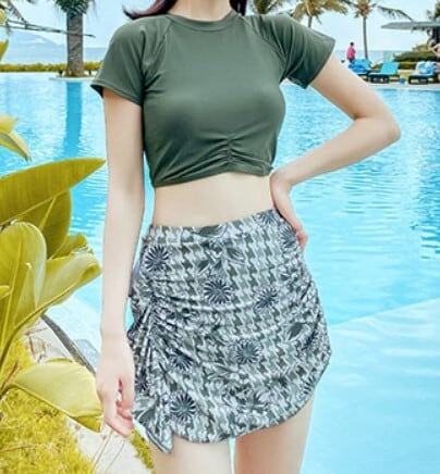 レディース/水着/半袖/2点セット/スイムウェア/スカート風/パンツタイプ/体型カバー大人女子/大人可愛い/韓国