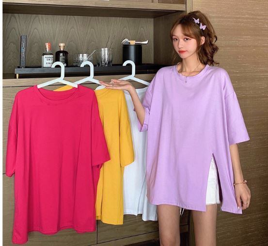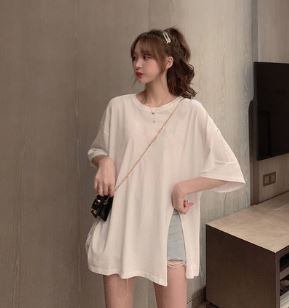 Tシャツ カットソー 綿 コットン 4色 半袖 無地 ラウンドネック 丸首 クルーネック トレンド ゆったり ビッグシルエット オーバーサイズ スリット シンプル ナチュラル ラフ カジュアル おしゃれ こなれ感 カッコいい 恰好良い 大人 ガーリー 春 春物 春コーデ 春服 夏 夏物 cnalby0262