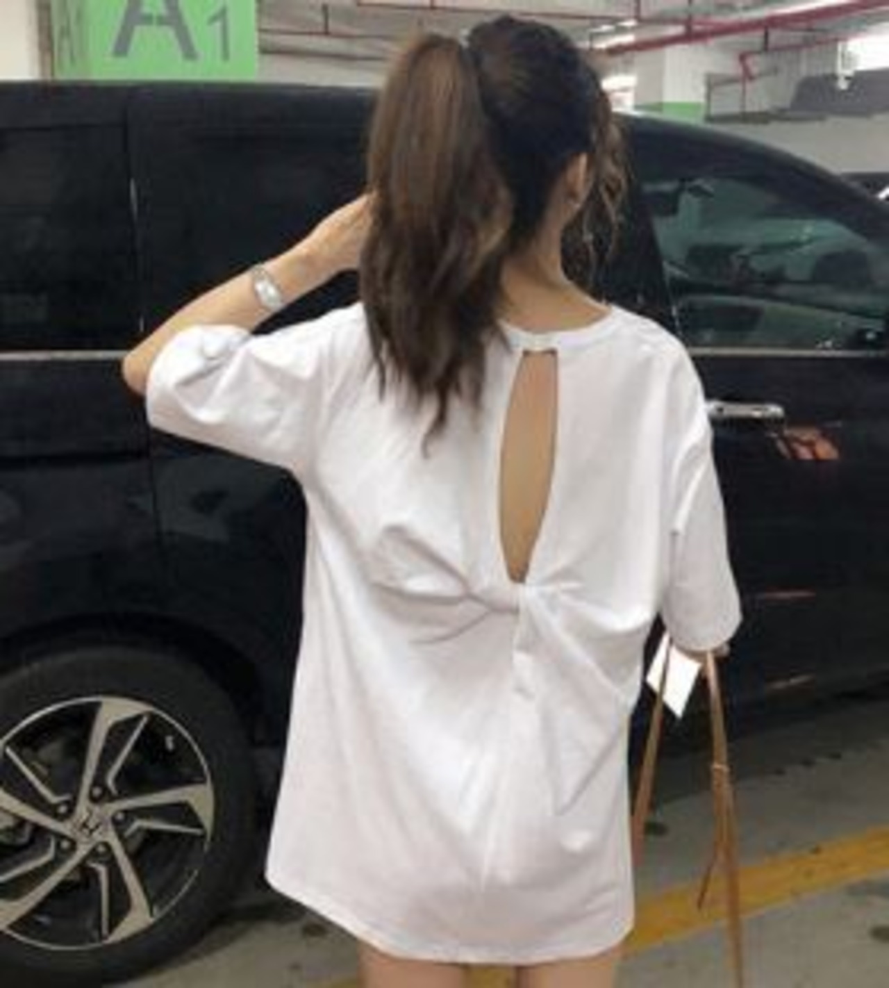 Tシャツ カットソー 綿 コットン 3色 半袖 無地 ラウンドネック 丸首 クルーネック トレンド バックコンシャス ゆったり ざっくり シンプル ナチュラル ラフ カジュアル おしゃれ こなれ感 大人 かわいい 可愛い 大人可愛い ストリート ガーリー 春 春物 春コーデ 春服 夏 cnalby0263
