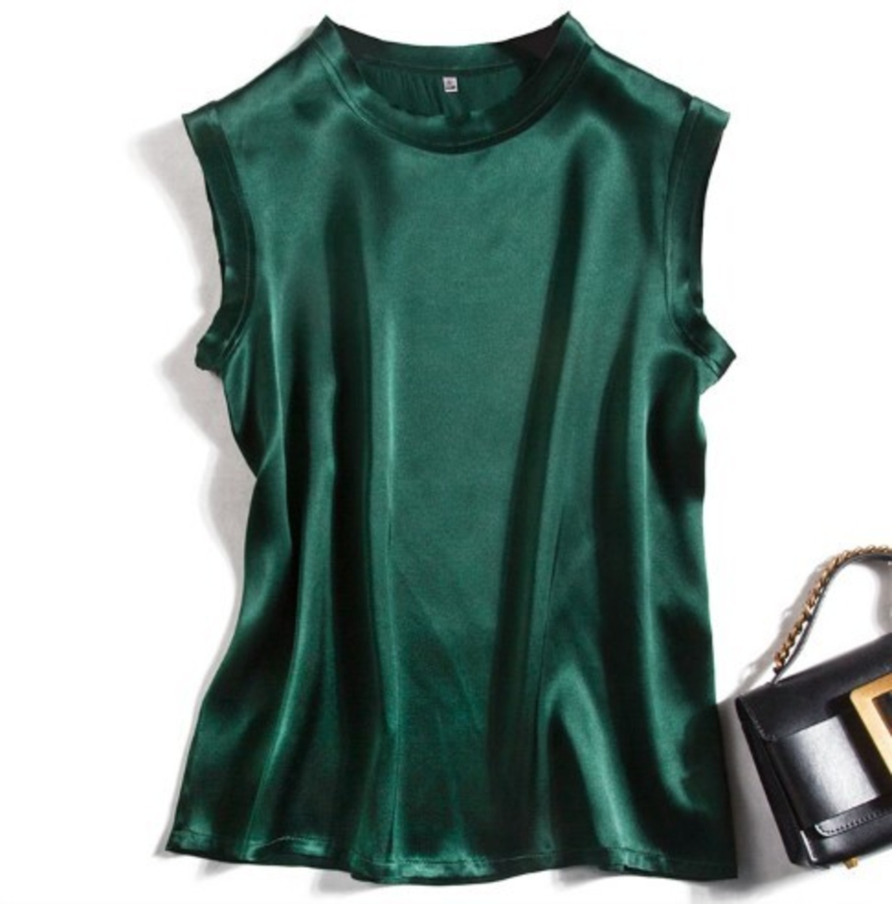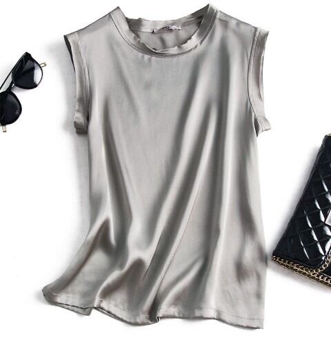 レディースファッション/レディース/春夏/ノースリーブ/サテン/トップス/さらさら/インナー/ラウンドネック/ゆったり/スタイルアップ/薄手/オフィス/セクシー/OL/シンプル/ゆったり/無地