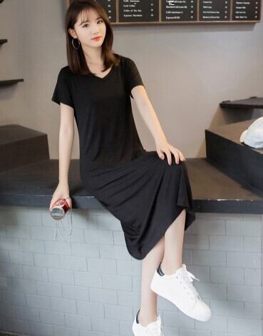 ワンピース/8色/ニット/Aラインワンピ/ひざ下丈/ミモレ丈/Vネック/無地/ストライプ/ボーダー/着痩せ/ストレッチ/伸縮性/サラサラ素材/通気性が良い/重ね着風/シンプル/ナチュラル/ラフ/カジュアル/ゆったり/春/春物/春コーデ/春服/夏/夏物/夏コーデ/夏服/夏素材/涼し気素材/部屋着/ルームウェア/通勤/オフィス/散歩/休日/20代/30代/40代/レディース/マタニティ/妊婦/ママ/ママコーデ/快適/動きやすい/楽/楽ちんコーデ/リラックスウェア/着回し/ヘビロテ/合わせやすい/脚長効果/柔らかい/肌ざわりが良い/肌触りが良い