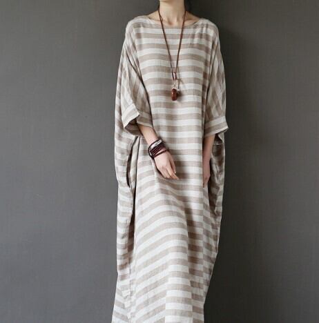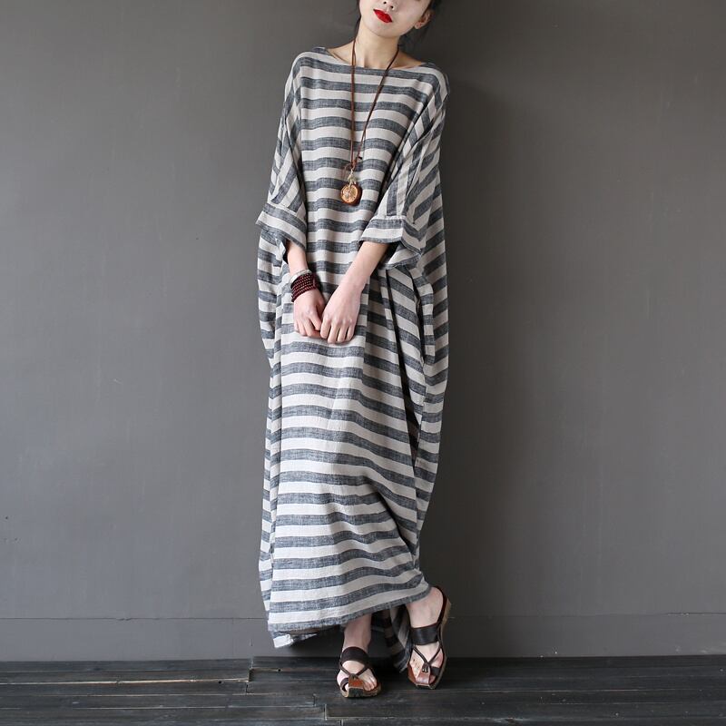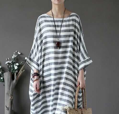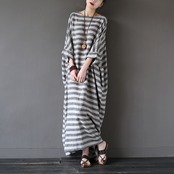 リゾートワンピ ワンピース 3色 テントラインワンピース ロング丈 マキシ丈 ラウンドネック 丸首 バルーンスリーブ ストライプ ボーダー トレンド ラフ カジュアル おしゃれ 大人可愛い 森ガール ゆったり エスニック 春 春物 春コーデ 春服 普段着 部屋着 ルームウェア cnalbn0485