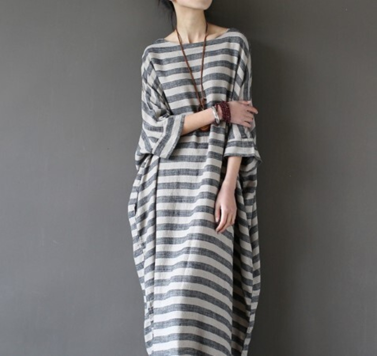 リゾートワンピ/ワンピース/3色/テントラインワンピース/ロング丈//マキシ丈/ラウンドネック/丸首/バルーンスリーブ/ストライプ/ボーダー/トレンド/ラフ/カジュアル/おしゃれ/大人可愛い/森ガール/ゆったり/エスニック/春/春物/春コーデ/春服/普段着/部屋着/ルームウェア/お出かけ/散歩/休日/20代/30代/40代/50代/60代/レディース/カジュアルダウン/快適/楽/楽ちんコーデ/リラックスウェア/合わせやすい