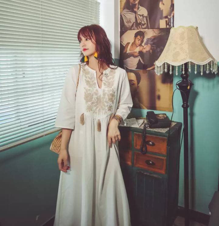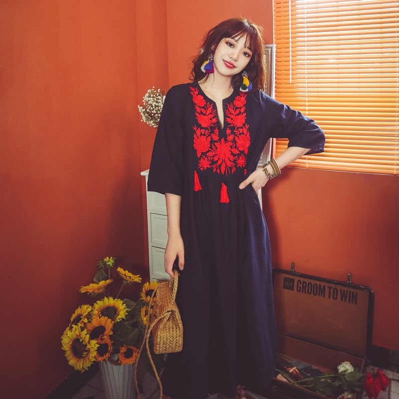ワンピース/フレアワンピース/3色/Aラインワンピ/ロング丈//Vネック/無地/レトロ/トレンド/ラフ/カジュアル/おしゃれ/こなれ感/大人可愛い/きれいめ/キレイ目/フェミニン/エレガント/ゆったり/ゆるふわ/エスニック/民族風/春/春物/春コーデ/春服/普段着/お出かけ/散歩/休日/20代/30代/40代/50代/60代/レディース/甘辛コーデ/甘辛MIX/快適/楽/楽ちんコーデ/リラックスウェア