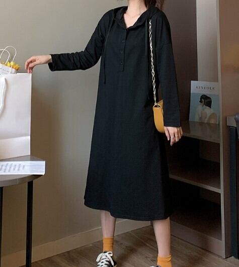 パーカーワンピース/ワンピース/2色/フィット&フレア/膝丈//ひざ丈/ミディアム/Vネック/無地/シンプル/ナチュラル/ラフ/カジュアル/ヘルシー/大人可愛い/森ガール/ゆったり/春/春物/春コーデ/春服/普段着/部屋着/ルームウェア/お出かけ/散歩/休日/20代/30代/40代/50代/60代/レディース/快適/動きやすい/リラックスウェア/着回し/ヘビロテ