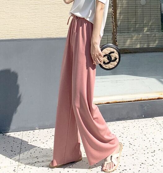 リブ生地でこなれ感!色んなコーデに合わせて着まわせるシンプルなワイドパンツ