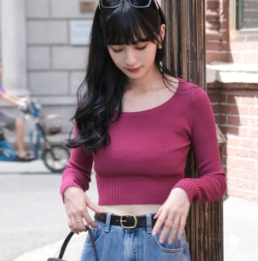 ニット/セーター/ニットソー/カットソー/ブラウス/ハーフトップ/2色/薄手/長袖/無地/ラウンドネック/丸首/レトロ/ゆったり/ドロップショルダー/シンプル/ナチュラル/ラフ/カジュアル/ポップ/ヘルシー/おしゃれ/こなれ感/シック/大人っぽい/大人可愛い/秋/秋物/秋服/普段着/お出かけ/女子会/散歩/休日/授業参観/くすみカラー/10代/20代/30代/40代/50代/60代/レディース/カジュアルダウン/甘辛コーデ/甘辛MIX/快適/動きやすい/リラックスウェア/着回し/ヘビロテ/合わせやすい