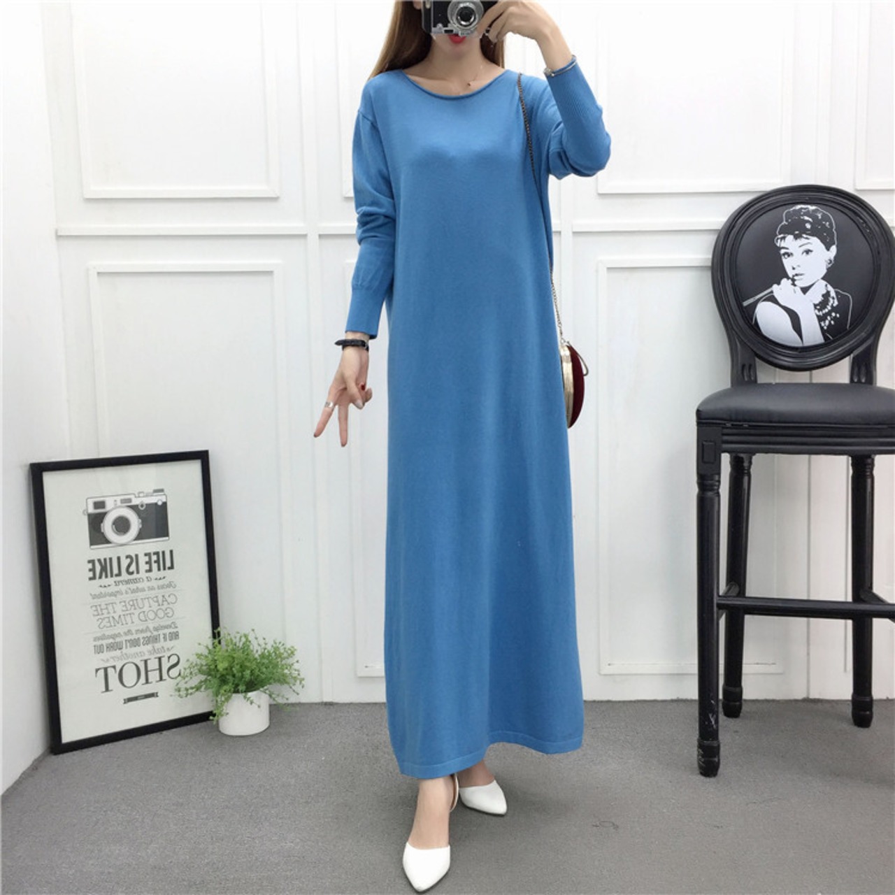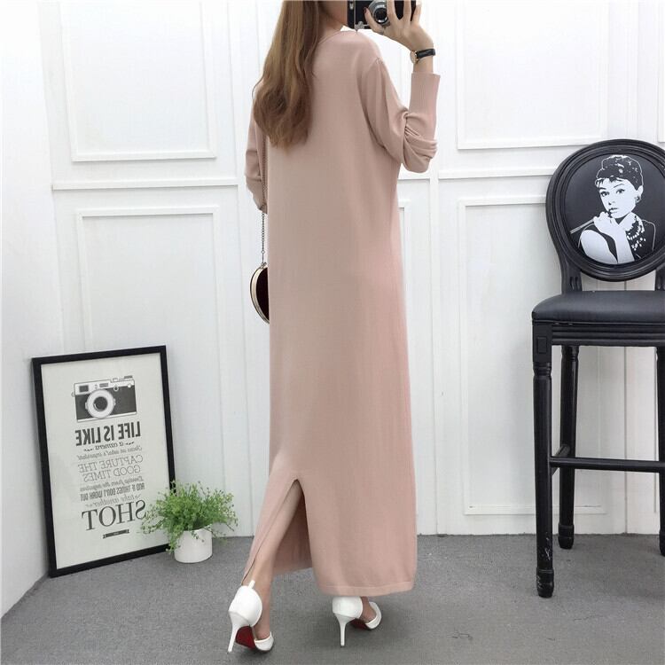ニットワンピース/ワンピース/Aラインワンピ/ロング丈//マキシ丈/長袖/Iライン/ゆったり/体型カバー/ラウンドネック/丸首/無地/レトロ/レイヤード/ベーシック/トレンド/スリット/シンプル/ナチュラル/ラフ/カジュアル/ヘルシー/おしゃれ/こなれ感/かわいい/可愛い/きれいめ/キレイ目/フェミニン/ゆったり/秋/秋物/秋服/普段着/お呼ばれ/お出かけ/通勤/オフィス/デート/合コン/女子会/20代/30代/40代/50代/60代/レディース/甘辛コーデ/甘辛MIX/楽/楽ちんコーデ/着回し/ヘビロテ/合わせやすい