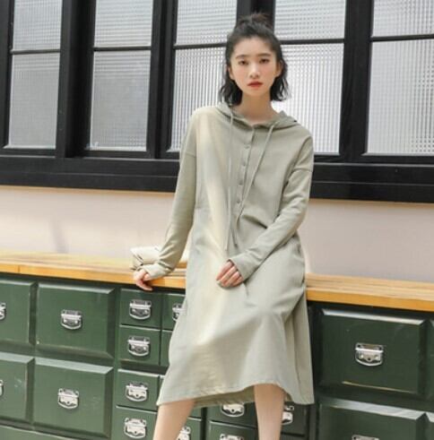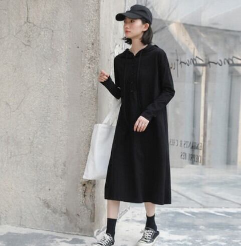 ワンピース/フレアワンピース/Aラインワンピ/ひざ下丈/ミモレ丈/長袖/ゆったり/体型カバー/Vネック/無地/レトロ/レイヤード/ベーシック/フード付き/シンプル/ナチュラル/ラフ/カジュアル/ヘルシー/大人/きれいめ/キレイ目/フェミニン/ゆったり/秋/秋物/秋服/普段着/部屋着/ルームウェア/お出かけ/休日/20代/30代/40代/50代/60代/レディース/女子ウケ/甘辛コーデ/甘辛MIX/快適/動きやすい/楽/楽ちんコーデ/リラックスウェア/着回し/ヘビロテ
