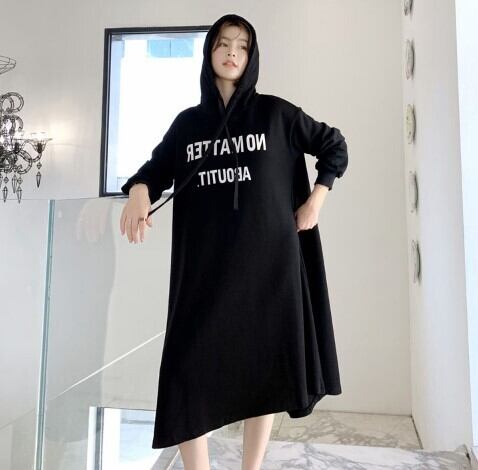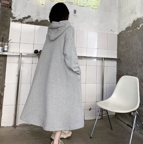 パーカーワンピース ワンピース フレアワンピース Aラインワンピ ひざ下丈 ミモレ丈 長袖 ゆったり 体型カバー Vネック 無地 ベーシック トレンド フード付き シンプル ナチュラル ラフ カジュアル 大人可愛い フェミニン ストリート ゆったり 秋 秋物 秋服 普段着 部屋着 cnalbn0820
