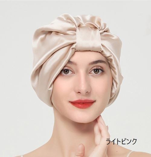 シルク素材を使用した、なめらかな肌触りのナイトキャップです。