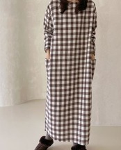 レディースファッション/ワンピース/ワンピ/長袖/ロング/マキシ/チェック/ガーリー/プルオーバー/カジュアル/らくちん/リラックス/ゆったり/スタイルアップ/美シルエット/おしゃれ/カジュアル/ガーリー/デイリー/おでかけ/大人/モダン/無地/シンプル/着回し/ゆったり/ラフ/体型カバー/おしゃれ/大人/かっこいい/クール/10代/20代/30代/40代/50代