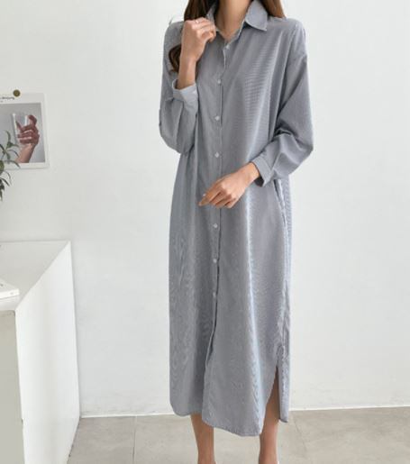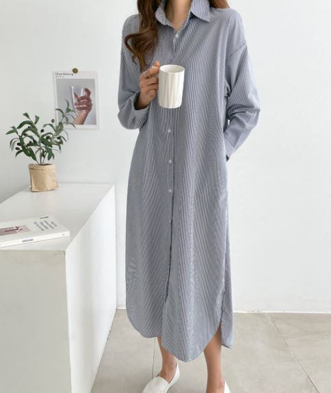 レディースファッション/ワンピース/ワンピ/ロング/ストライプ/バイカラー/シャツワンピ/チュニックワンピ/ラフ/オフィス/通勤/無地/スタイルアップ/美シルエット/おしゃれ/カジュアル/ガーリー/デイリー/おでかけ/大人/モダン/無地/シンプル/着回し/ゆったり/ラフ/体型カバー/おしゃれ/大人/かっこいい/クール/10代/20代/30代/40代/50代