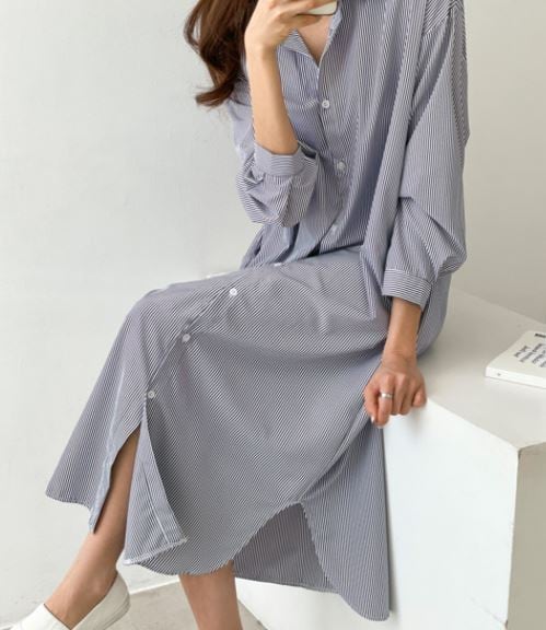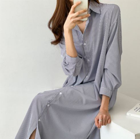 レディースファッション/ワンピース/ワンピ/ロング/ストライプ/バイカラー/シャツワンピ/チュニックワンピ/ラフ/オフィス/通勤/無地/スタイルアップ/美シルエット/おしゃれ/カジュアル/ガーリー/デイリー/おでかけ/大人/モダン/無地/シンプル/着回し/ゆったり/ラフ/体型カバー/おしゃれ/大人/かっこいい/クール/10代/20代/30代/40代/50代