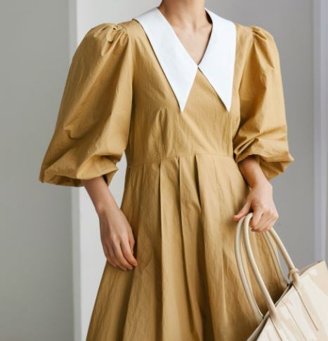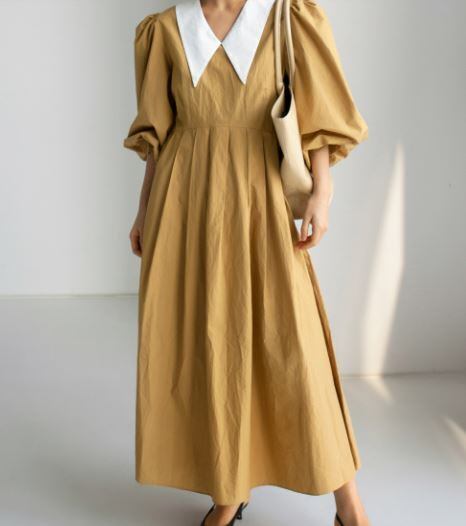レディースファッション/ワンピース/ワンピ/ロング丈/ふんわり/フレア/パフスリーブ/バルーンスリーブ/襟付き/ボリューム袖/袖コンシャス/ウエストマーク/ドレスワンピース/お呼ばれ/バイカラー/ワンピ/ラフ/ラブリー/無地/スタイルアップ/美シルエット/おしゃれ/カジュアル/ガーリー/デイリー/おでかけ/大人/モダン/無地/シンプル/着回し/ゆったり/ラフ/体型カバー/おしゃれ/大人/かっこいい/クール/10代/20代/30代/40代/50代