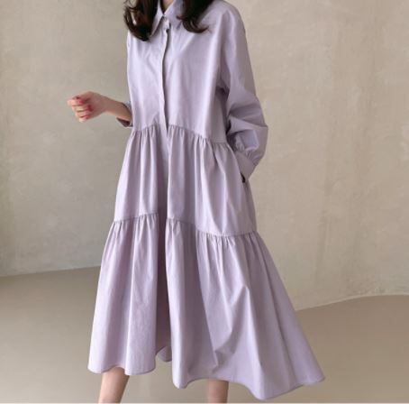 シャツワンピース 春夏 長袖 春物 ミディアム丈 ひざ丈 シャツワンピ ワンピ ウエストマーク マカロンカラー オフィス 通勤 レディライク ラフ キュート ふんわり デイリー おしゃれ ゆったり 体型カバー きれいめ 無地 シンプル 着回し 10代 20代 30代 40代 レディースファッション cnalby1416