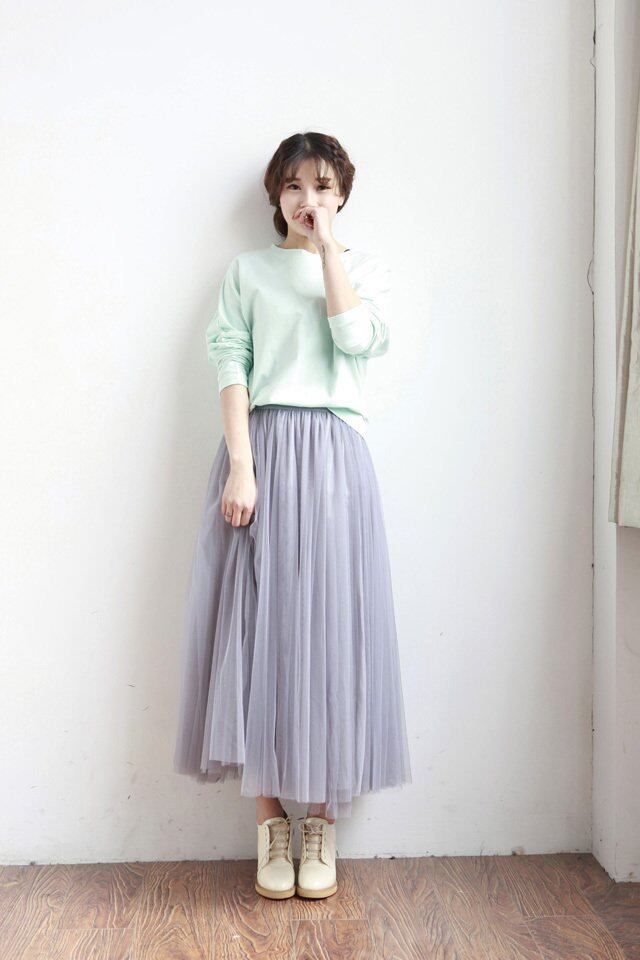 スカート/チュールスカート/ロング丈/シースルー/透け感/着やせ/フェミニン