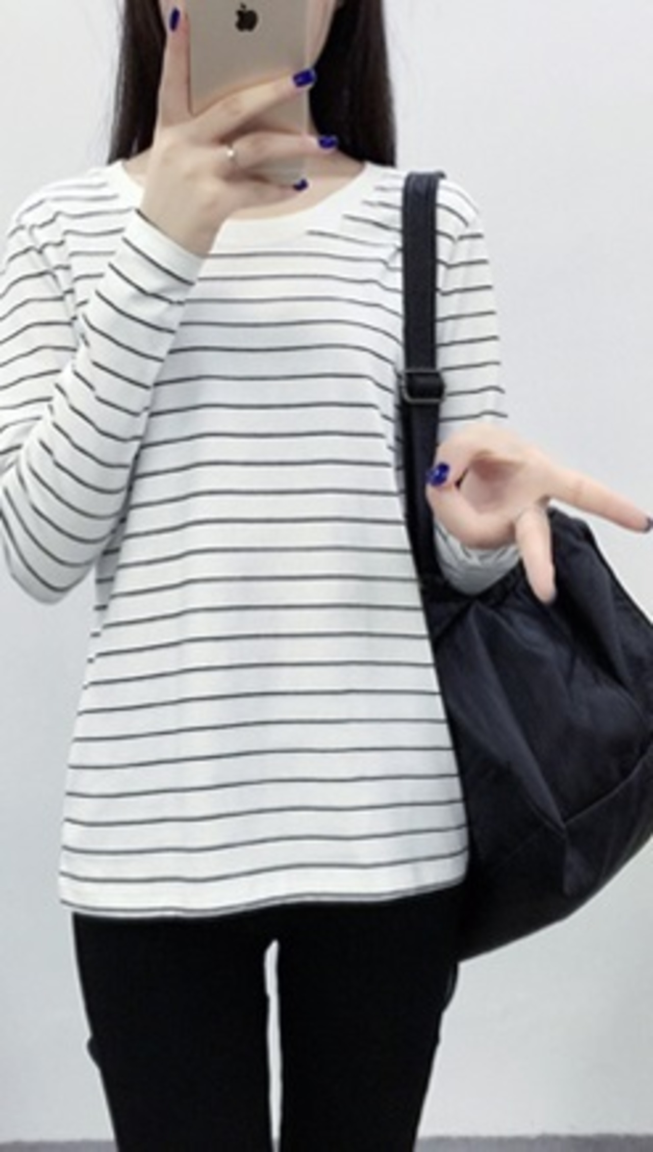 トップス/カットソー/ボーダー/長袖/シンプル/着回し/自然